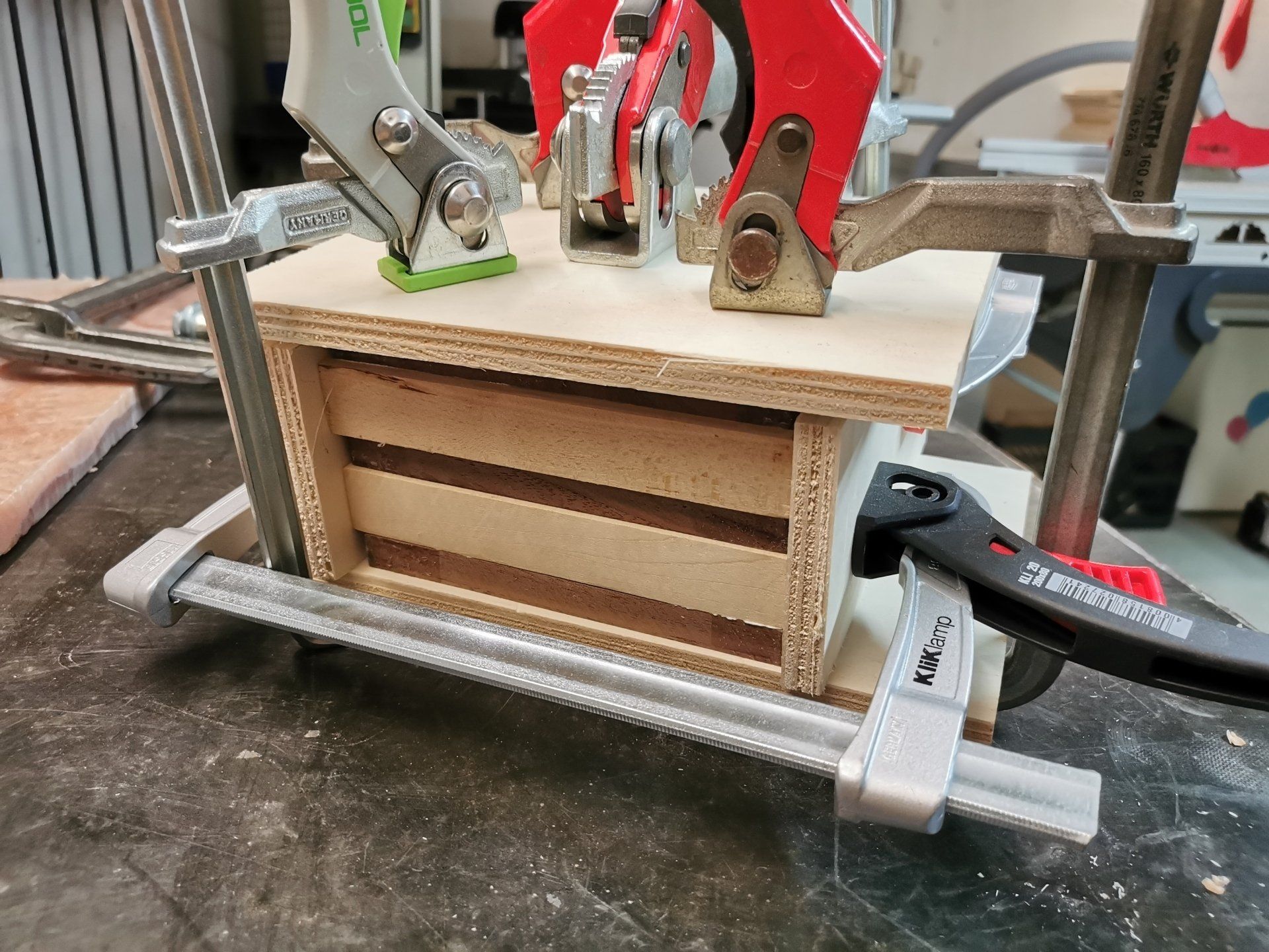 Das Holz ist edles Bocote. Die Oberfläche wurde mit Schellack poliert und versiegelt.