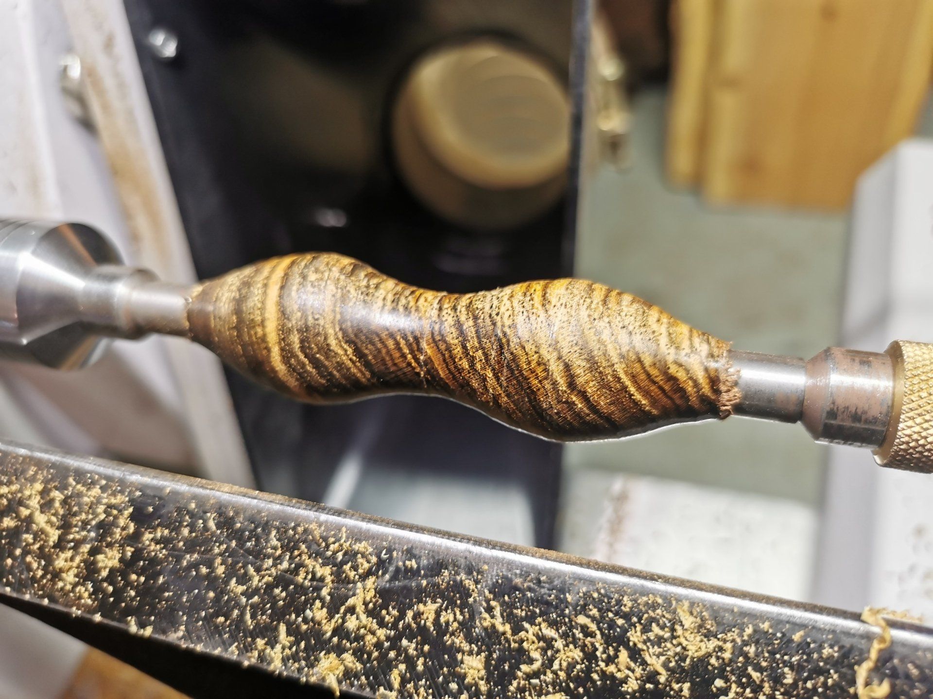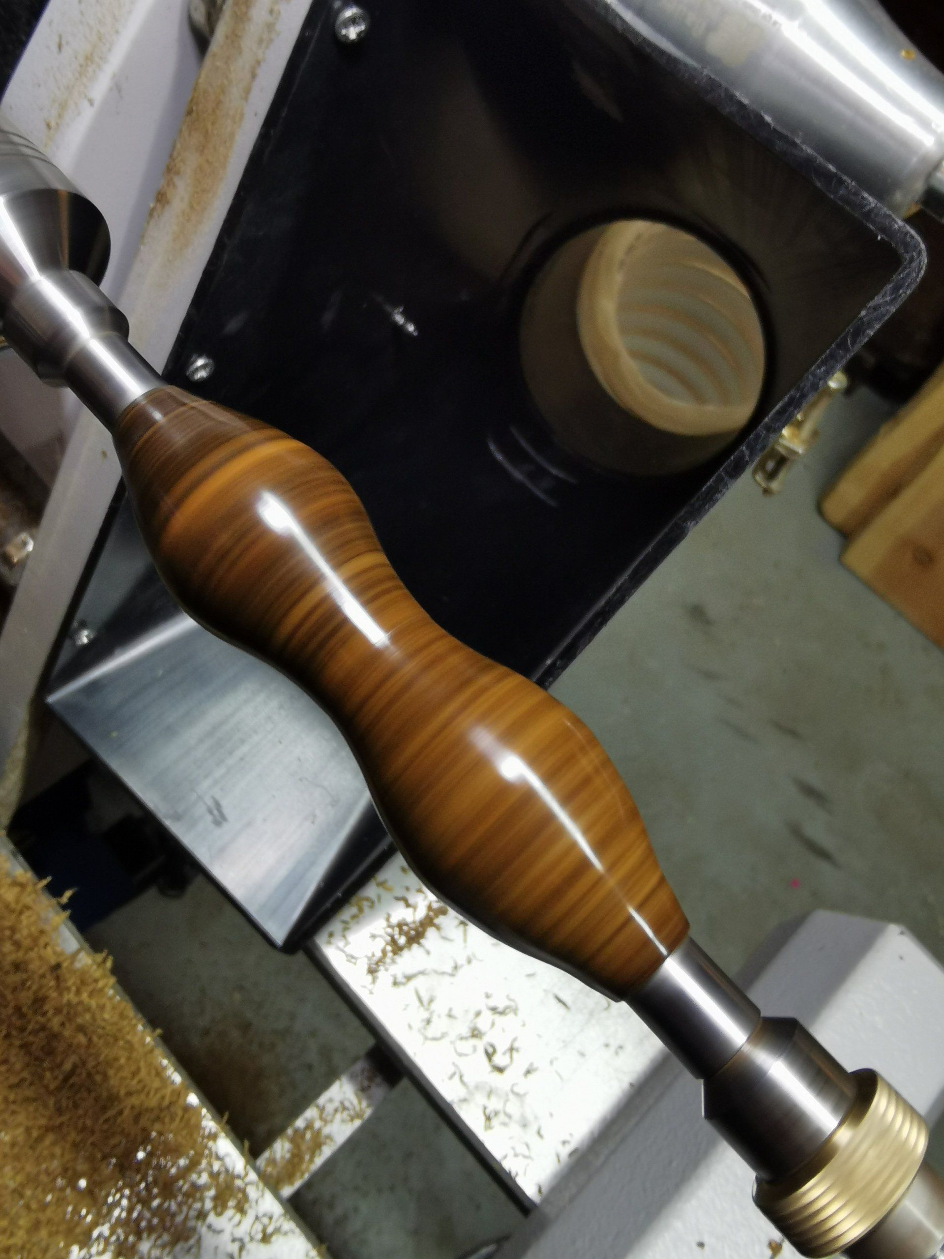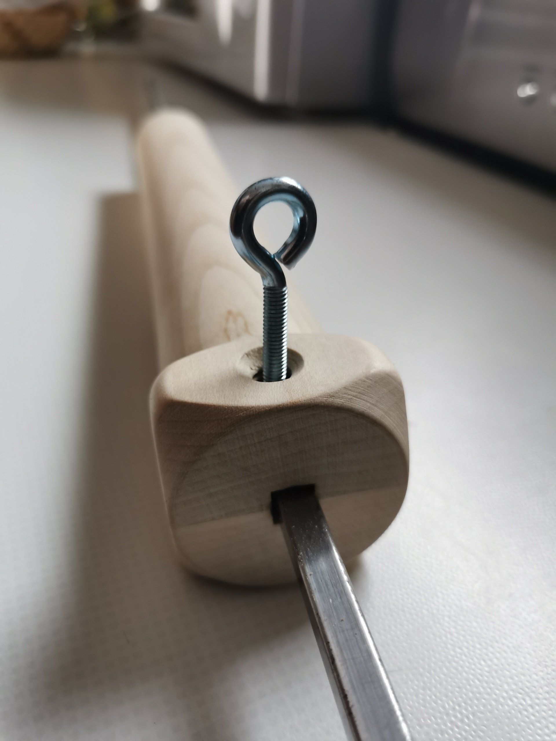 Grill-Master-Chief und sagte, er will einen Baumkuchen auf dem Gasgrill backen. Dazu braucht es eine Rolle aus Holz. Und wer kann das maßgenau machen? Genau! Der Drechselhiasl. Also gesagt getan: Eine Baumkuchenrolle aus Ahorn, passgenau für einen Grillspieß. Das ist aber nur ein Prototyp - es folgen noch weitere, da das System perfektioniert werden soll.
